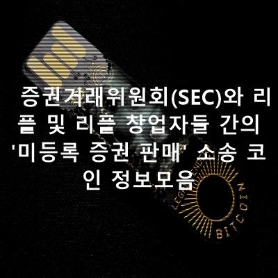증권거래위원회(SEC)와 리플 및 리플 창업자들 간의 '미등록 증권 판매' 소송 코인 정보모음, 여러가지 코인 전망 정보 정리 하였습니다.