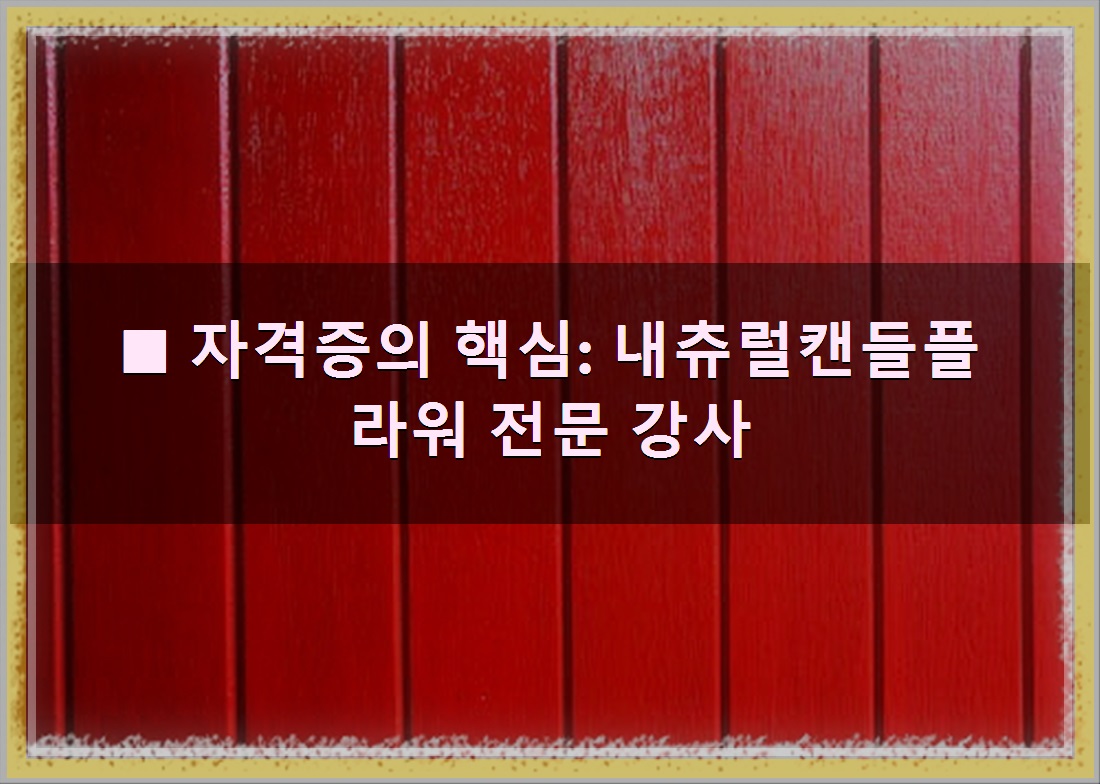 이 유망 자격증의 정식 명칭은 바로 내츄럴캔들플라워 전문 강사입니다. 이름에서부터 자연 친화적인 아름다움이 느껴지는 이 자격증은 영문으로 'natural candle flower instructor'라 불립니다.